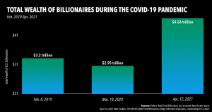 Billionaires’ huge pandemic-era wealth gains have come amid the past 13 months of coronavirus misery. During those same 13 months, over 30 million Americans fell ill from COVID, over 560,000 died from it and about 77 million lost jobs.