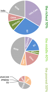 Note that, as per the champagne glass above, our wealthiest live starkly different lives from our poorest, many of whom (still) survive on less than $2 per day and in so doing generate an almost negligible amount of greenhouse gas emissions.