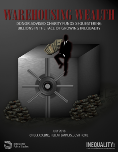 “Warehousing Wealth: Donor-Advised Charity Funds Sequestering Billions in the Face of Growing Inequality” is a new Institute for Policy Studies report that takes a close look at donor-advised funds, or DAFs, and the risks they pose to the independent charitable sector, taxpayers, and the public interest.