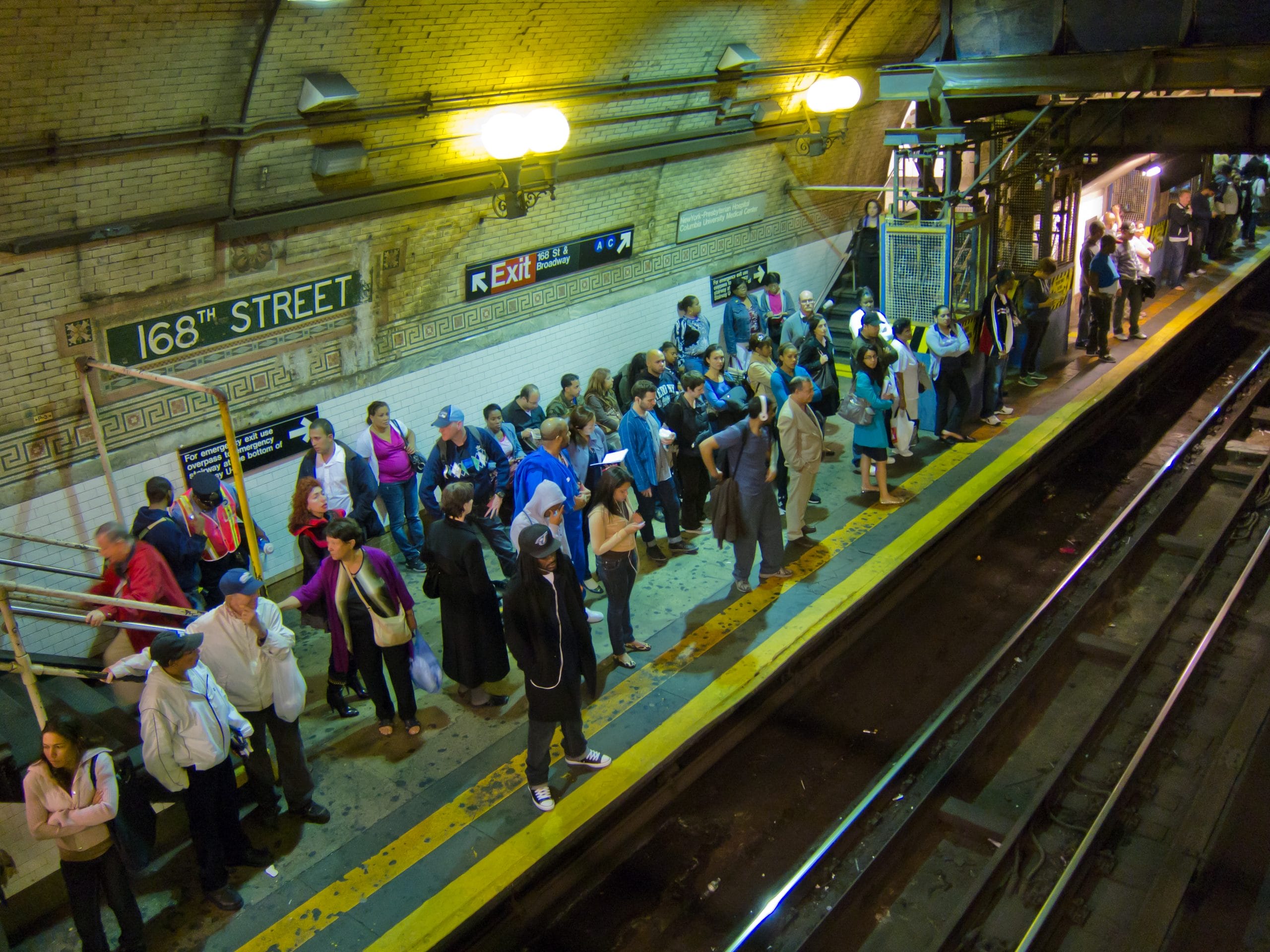 Crowded platform at 168th street in NYC after a water main break causes severe service disruptions. Photo: Susan Sermoneta, September 2011
