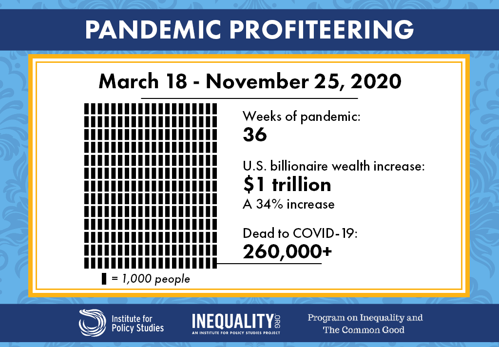 Tuesday, November 24, as the Dow crossed the 30,000 mark, the wealth of 650 U.S. billionaires approached a total of $4 trillion, with more than $1 trillion ($1.008 trillion) in growth since March 2020.