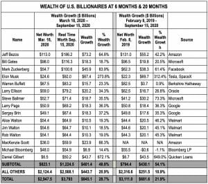 On March 18, total U.S. billionaire wealth was $2.947 trillion. As of September 3, total U.S. billionaire wealth has risen to $3.917 trillion.