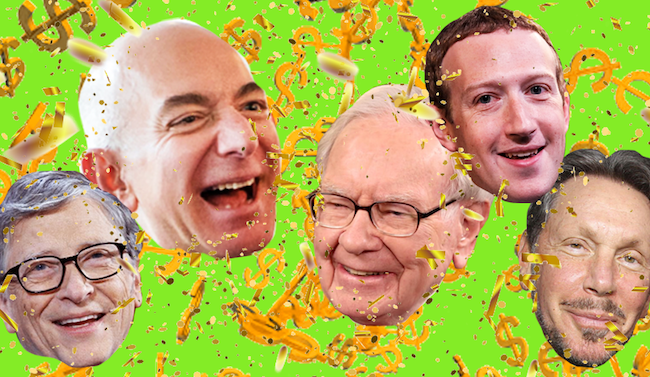 The top five billionaires—Jeff Bezos, Bill Gates, Mark Zuckerberg, Warren Buffett and Larry Ellison—saw their wealth grow by a total of $101.7 billion, or 26%. They captured 17.4% of the total wealth growth of all 600-plus billionaires in the last three months. The fortunes of Bezos and Zuckerberg together grew by nearly $76 billion, or 13% of the $584 billion total.